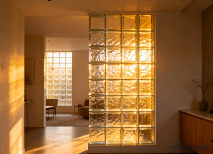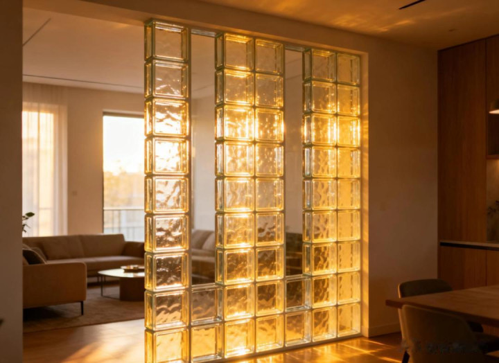 玻璃砖代替实体墙: 在非承重墙的位置,镶嵌一整面或几排玻璃砖。它能透光但不透东说念主,既保证了秘密,又能把近邻房间的晴明引进来,颜值还高出高。