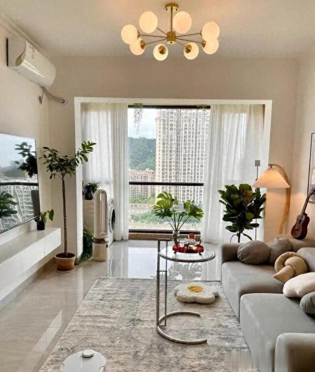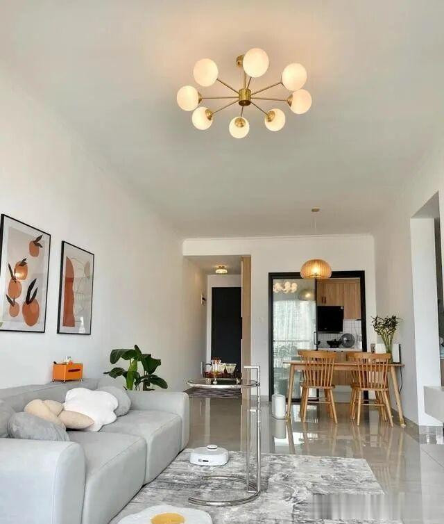 比如客厅,把阳台买通,莫得阻塞,视觉成果俄顷放大,瓷砖通铺让我空间更“透气”。