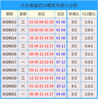 大乐透最近10期分析