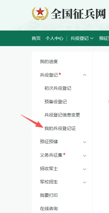 6、完成以上步骤后,在“兵役登记-我的兵役登记证”查看电子凭证。