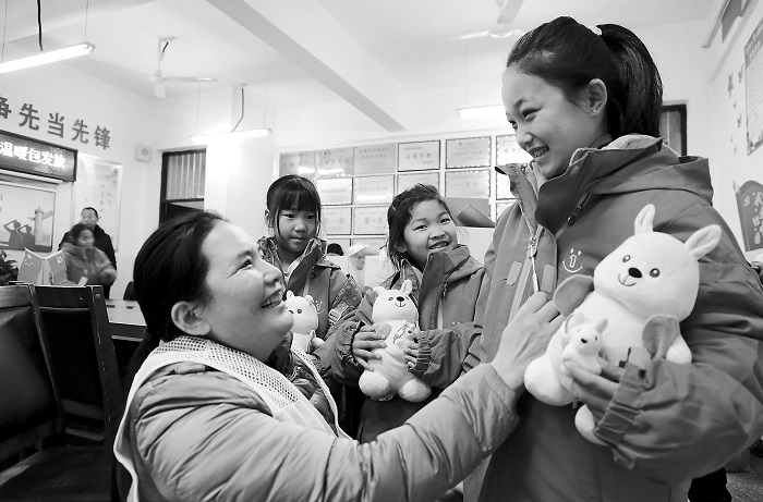 当日,益爱志愿者协会的志愿者来到颍东区口孜镇中心小学,为孩子们发放包括棉衣、手套、棉鞋、书包等物品的“温暖包”,让孩子们在寒冬时节感受到温暖。本报通讯员 宿飞 摄
