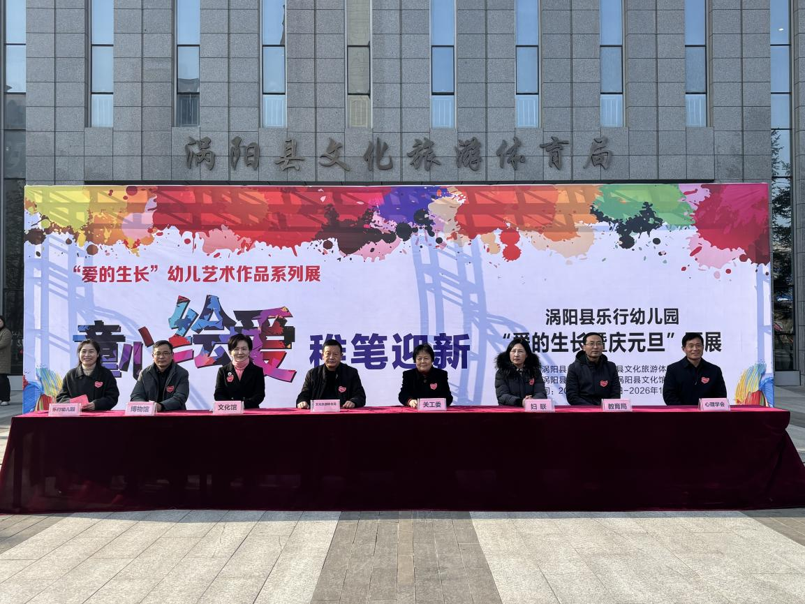 2025年12月30日下午,安徽省亳州市涡阳县文化馆内翰墨飘香、童趣盎然,乐行幼儿园“童心绘爱 稚笔迎新——爱的生长”暨庆元旦艺术作品展在此举办。