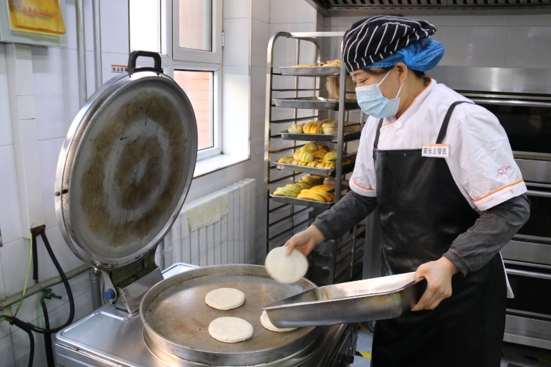 今年39岁的丁小梅每天凌晨三点多就来到秦宁中学的食堂里,开始制作各种面点。虽然很辛苦,但她却觉得值得。“来这边干活不仅有了收入,还能每天看见孩子在学校咋样,吃得咋样。”她说。