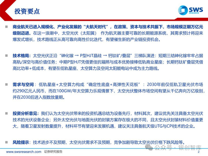 在贸易航天迈入范围化、产业化的 “大航天期间” 布景下,战术扶合手、老本涌入与技巧松懈造成共振,鞭策行业商场范围向万亿元级别加快迈进。天外光伏当作航天器中枢能源系统,是复古卫星组网、深空探伤、天外算力等航天欺诈落地的 “能源腹黑”,其技巧迭代与需求增长成为贸易航天产业链的重要松懈口。刻下,金年会(JinNianHui)体育官网天外光伏技巧正沿着砷化镓、P 型 HJT 晶硅、钙钛矿 / 叠层三梯队有序演进,低轨卫星星座确立与天外算力布局构筑起行业需求的细目性底盘与高弹性天花板,开云app商场空间有望从百亿级向万亿级跳动。与此同期,天外光伏封装、材料、开辟等举止迎来全新发展机遇,产业链投资价值空隙突显。本文将从技巧神气、需求空间、产业链机遇等维度,深度理解天外光伏行业的发展逻辑与投资远景,挖掘贸易航天万亿蓝海中的中枢投资契机。